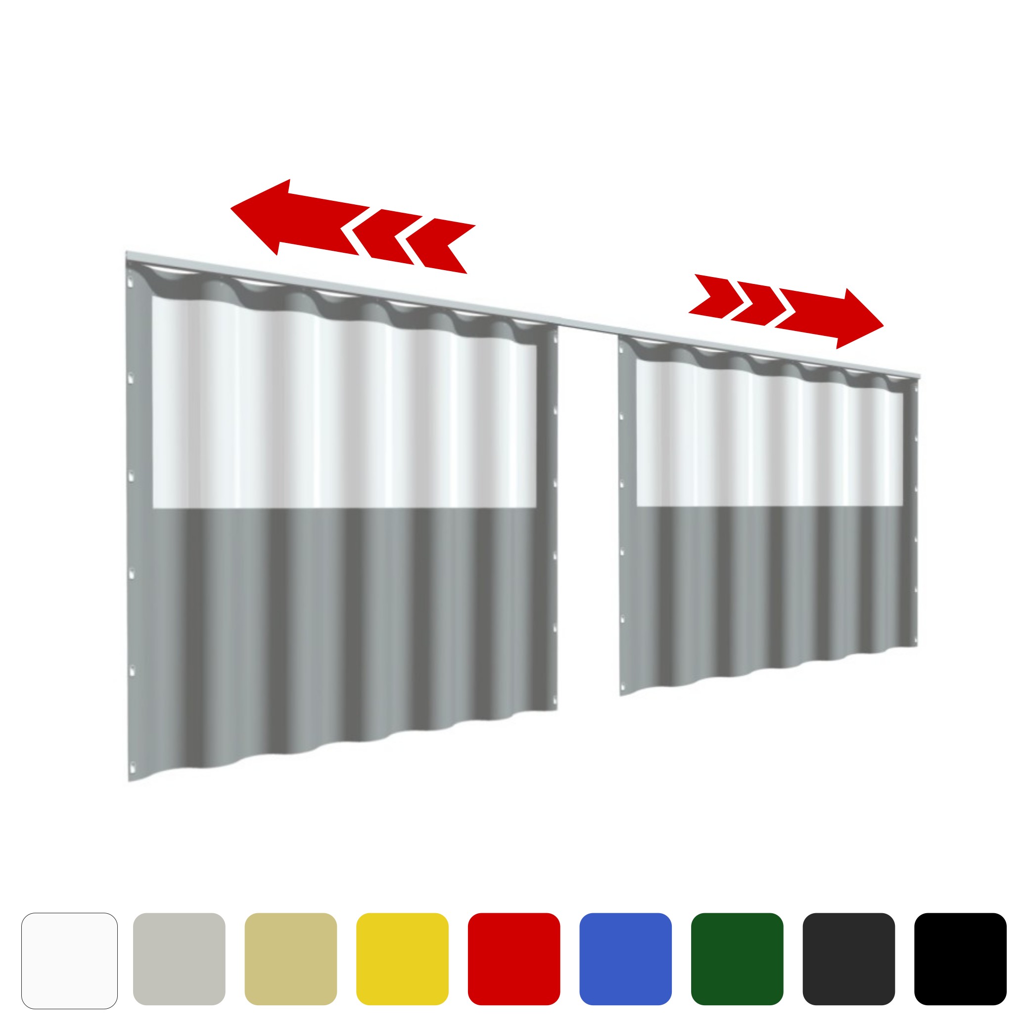 Ponyvafüggöny, „Roller” két irányba széthúzható, ablakos
