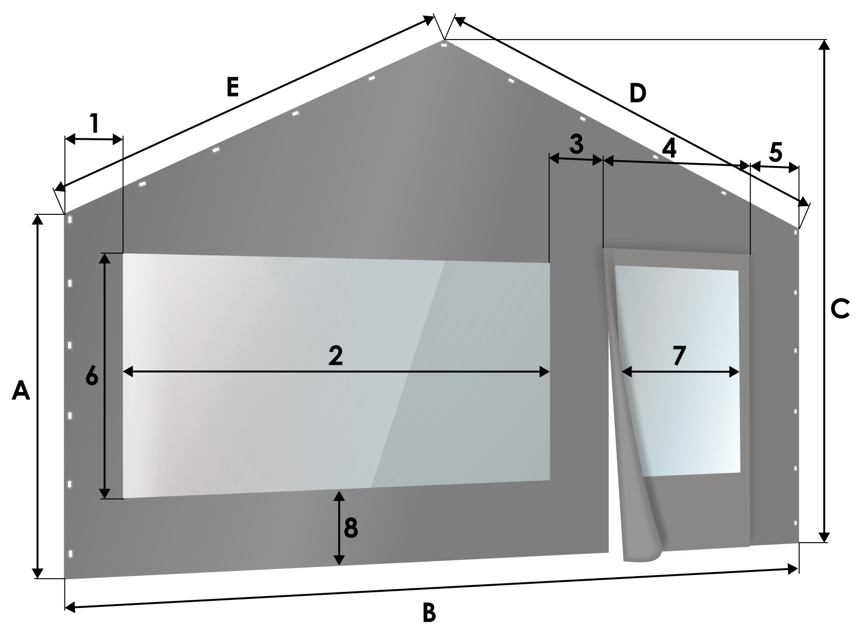 *A méretezett ábra a ponyva külső nézetét ábrázolja!