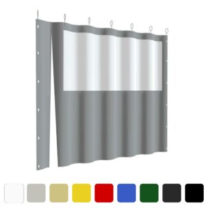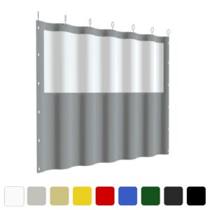A „Ring” típusú PVC ponyvafüggöny 50 cm távolságra rögzített, speciális függönytartó karikákkal könnyedén felszerelhető rúd karnisra. Ez a megoldás ideális olyan helyekre, ahol a stabil rögzítés és a könnyű mozgathatóság fontos szempont. Az egyszerű telepítés mellett ez a típus tartós és praktikus megoldást kínál kül- és beltéri használatra egyaránt. Elegáns és funkcionális rögzítés.